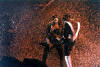 ¡Entonces, al final de la canción la lona fue desplegada, el confeti se