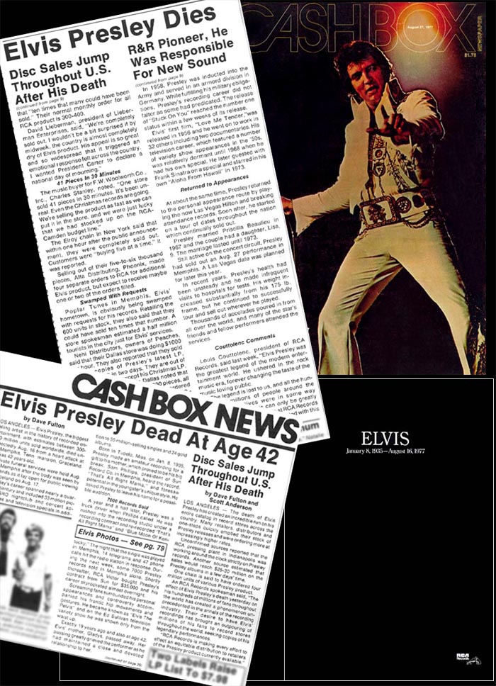años... ...con motivo de la desaparición de Elvis, el Presidente y Editor de la prestigiosa revista CASHBOX, George Albert, escribió el siguiente editorial para su publicación. Por la SORPRENDENTE vigencia que conserva hoy día, lo hemos elegido como nuestro homenaje al más grande ARTISTA de todos los tiempos al cumplirse hoy el 30° Aniversario de su fallecimiento.
