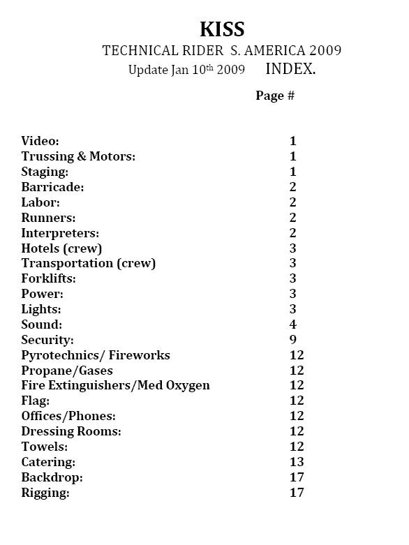 micrófono, según lista. Si KISS tocara al aire libre será necesario