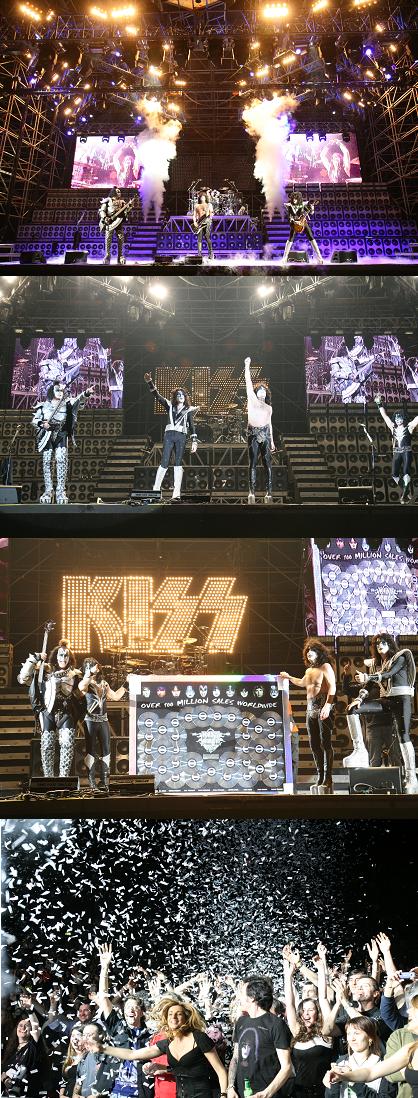 cubriendo el escenario. Después de que el telón cayó, KISS bajó en una