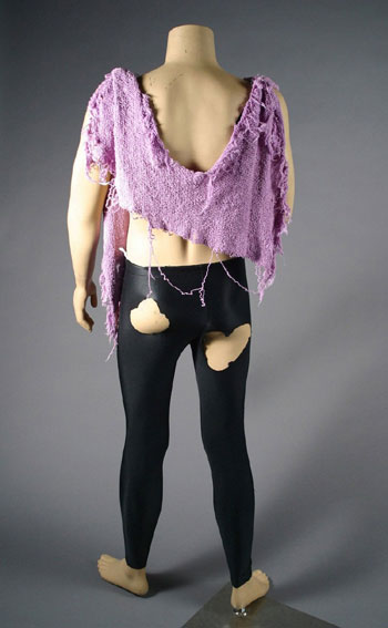 Traje de dos partes: Camisa sin mangas púrpura junto con un pantalón negro